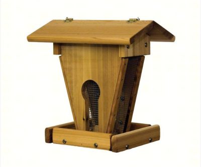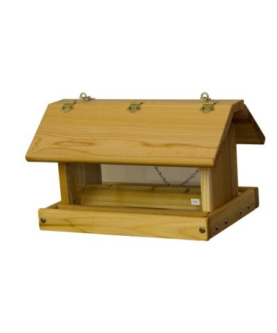 Mixed seed hanging hopper feeder has a three section roof. 12 lb. capacity. Made in the USA.