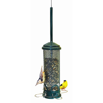 Mixed seed hanging hopper feeder has a three section roof. 12 lb. capacity. Made in the USA.